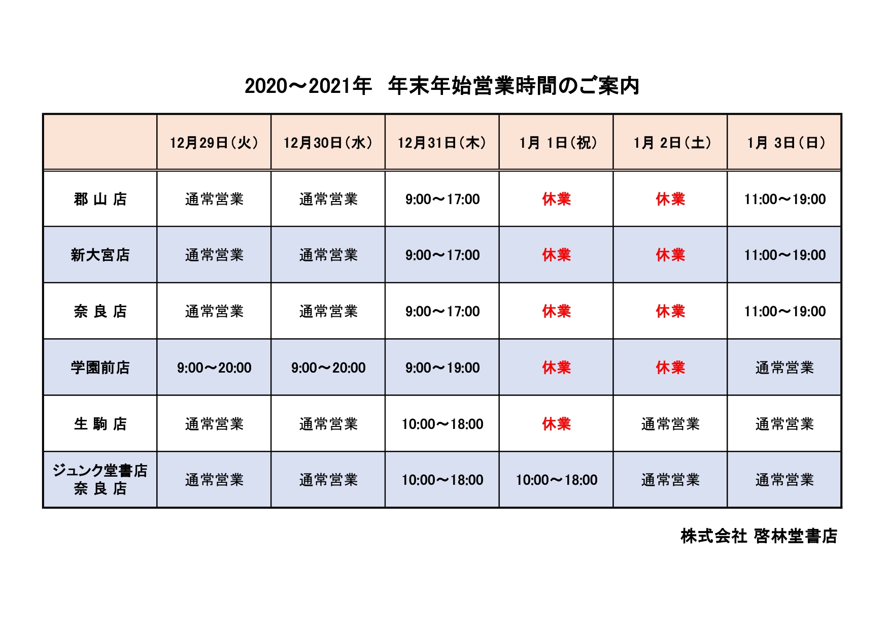 2021年も啓林堂書店をよろしくお願いいたします。 株式会社 啓林堂書店